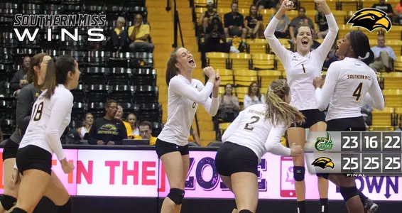 HATTIESBURG, Miss. -- The Southern Miss volleyball team faced a stiff test from visiting Charlotte, but the Golden Eagles continued to find ways to win and pulled out a Friday night sweep (25-23, 25-16, 25-22) over the 49ers.