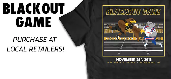 HATTIESBURG, Miss. -- Fans still looking for the opportunity to commemorate Friday's BLACKOUT game with rival Louisiana Tech have plenty of remaining options around Hattiesburg to purchase a BLACKOUT t-shirt.