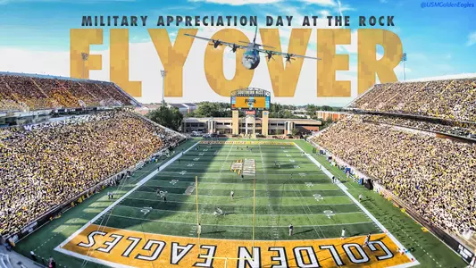 The flyover will take place moments after Southern Miss football team makes its entrance onto the field.