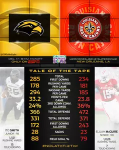There are two 1,000-yard rushers slated to battle one another, highlighted by Ito Smith and his 1,321 yards that rank No. 20 nationally. He has also scored 15 touchdowns, which ranks 15th. Elijah McGuire, the Ragin' Cajuns' ground-game star, put up 223 yards against South Alabama and has totaled 1,028 this season.