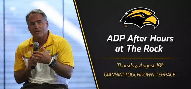 Aug. 16, 2016 HATTIESBURG, Miss. -- The Southern Miss athletics department is pleased to host the Hattiesburg Area Development Partnership in its After Hours at The Rock event, Thursday night from 5:30 to 7 p.m.