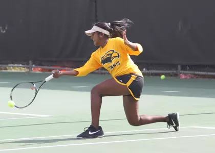 In doubles the Golden Eagles will advance one of the four teams to the winners bracket. Rikeetha Pereira and Elena Roca will advance to Saturday's match to face the duo from McNeese State after a 6-2 win over SMU.