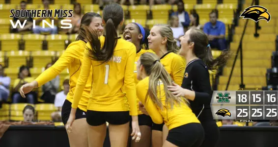 HATTIESBURG, Miss. -- The Southern Miss volleyball team waited 30 days between home matches and gave its fans a wonderful welcome, sweeping Marshall (25-18, 25-15, 25-16) on Friday night inside Reed Green Coliseum. It was the Golden Eagles' fifth straight win in the series.