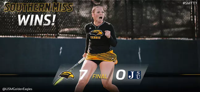 HATTIESBURG, Miss. -- The Southern Miss Women's Tennis team won its home opener after sweeping Jackson State 7-0 at the Southern Miss Tennis Facility.