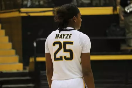 Mayze's double-double, the first of her career, came by the way of 14 total points and 10 rebounds. The transfer also dished out five helpers.