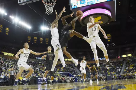 "There were some positives," Sadler said. "We were down 16-4 on the road and came back to lead at halftime. We kept our composure. We were getting really good shots in the first 10 minutes, but weren't making them. Overall, you gotta be happy that Michigan got only eight offensive rebounds. What a big team. We had almost 50 percent assists to made field goals, so a lot of sharing the basketball."