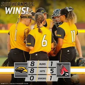 LAFAYETTE, La. - Southern Miss improved to 1-1 after the Golden Eagles defeated Ball State, 8-1, in the first game of the 2017 Louisiana Classic in Lafayette.