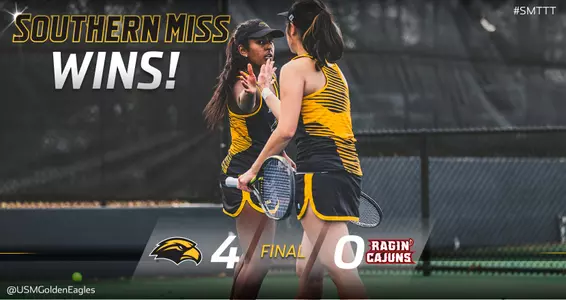HATTIESBURG, Miss. â€" Another home match and another victory for the Southern Miss women's tennis team after sweeping Louisiana-Lafayette 4-0 Friday afternoon at the Golden Eagles Tennis Facility.