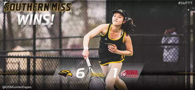 HATTIESBURG, Miss. â€" Tzu-Hui Chen claimed the winning point for the Southern Miss Women's Tennis team (5-3) to remain unbeaten at home after a 6-1 win against West Alabama Thursday afternoon.