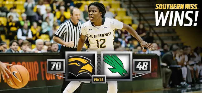 HATTIESBURG, Miss. -- The Southern Miss Women's basketball team (20-9, 12-5) overcame a slow first half to conquer North Texas (11-16, 8-8) 70-48 Thursday evening and collect the twentieth win of the season.