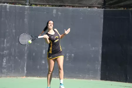 Elena Roca secured the Golden Eagles first point of the match in straight sets with a 6-2, 6-1 win. Roca's win was the first of three straight singles match wins to put the Golden Eagles within in one point of winning the dual. Alex Kitchen and Tjasa Jerse won their matches 7-5, 6-1 and 6-4, 6-4 respectively.