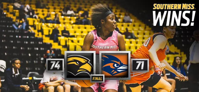 Hattiesburg, Miss. -- The Southern Miss Women's Basketball team (15-9, 7-5) slipped past the UTSA (11-11, 7-4) 74-71 Thursday evening.