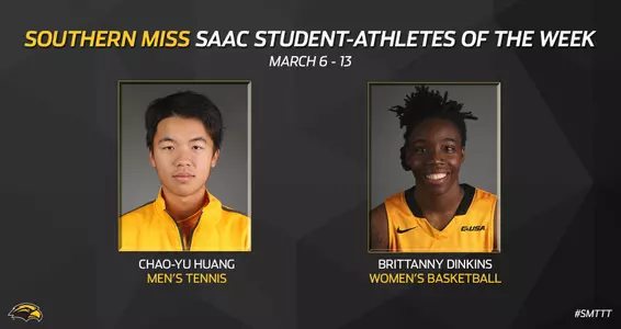 HATTIESBURG, Miss.-- Southern Miss seniors Chao-Yu Huang (men's tennis) and Brittanny Dinkins (women's basketball) were voted SAAC Players of the Week by their peers for their recent performances.