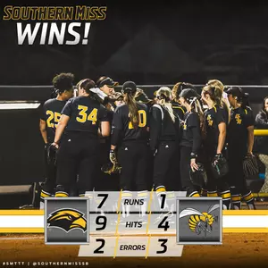 MONTGOMERY, Ala. â€" The Southern Miss softball team captured the road win against the Lady Hornets of Alabama State in a 7-1 decision on Tuesday, March 14. They improve to 13-10 on the season, 7-3 on the road.