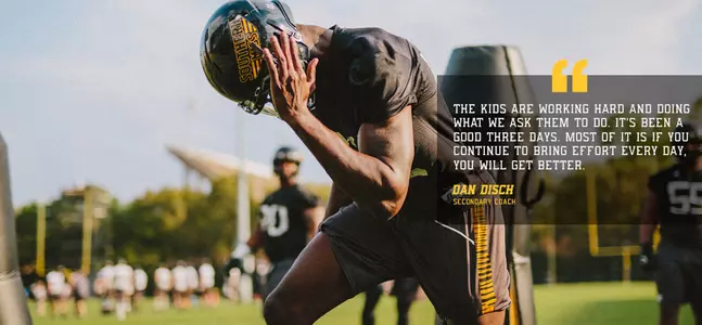 "We've got a long way to go. We've got some young guys getting some reps. We're getting a little older at cornerback and some youth and inexperience at safety, but the kids are working hard and doing what we ask them to do. It's been a good three days, but it's still early."