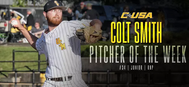 HATTIESBURG, Miss. - Southern Miss junior right-handed pitcher Colt Smith earned the Conference USA Pitcher of the Week Monday in an announcement by the league office.