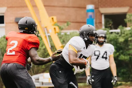T'Rod Daniels continued to make an excellent first impression as a Golden Eagle, taking a screen pass from Keon Howard 99 yards to the house early in the scrimmage and just before lightning forced an approximate one-hour delay. Other key Howard strikes were 28 yards to Allenzae Staggers and a 19-yarder to Isaiah Jones who pulled it down in traffic.