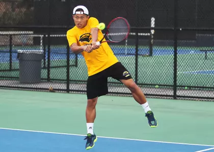 Wen-Po Tseng's 6-1, 6-2 win on court 4 improves the senior to 8-0 in singles play. Tseng remains the only undefeated Golden Eagle this season.