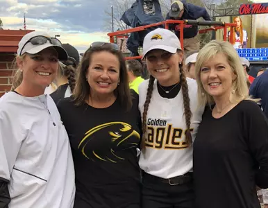 Anna and Belinda Gonzalez (sister-in-law) were able to meet and talk with Aldous and head softball coach Wendy Hogue after the Golden Eagles beat Ole Miss in Oxford, 5-2. "It meant so much to meet Caitlyn," said Gonzalez. "Mom would just love her and find such joy from helping her financially with her education and support the university she loved so dearly."
