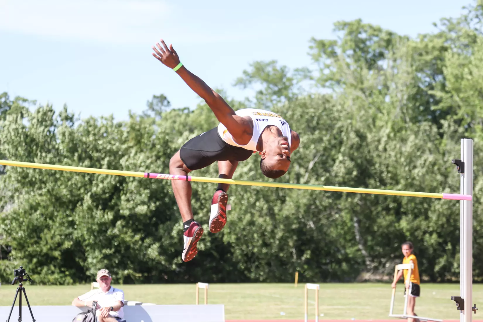 High Jump – Eric Richards placed first with a jump of 7'0.5". Caleb Parker came in third at 6'10.75".