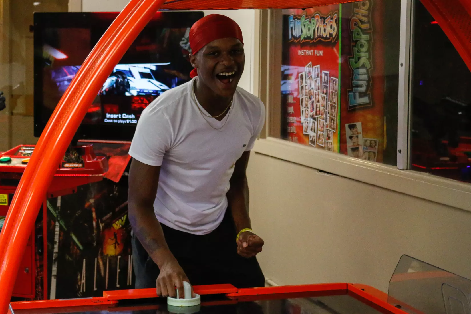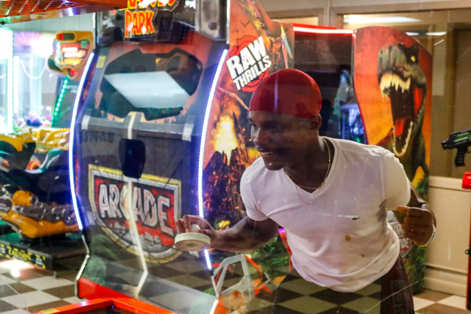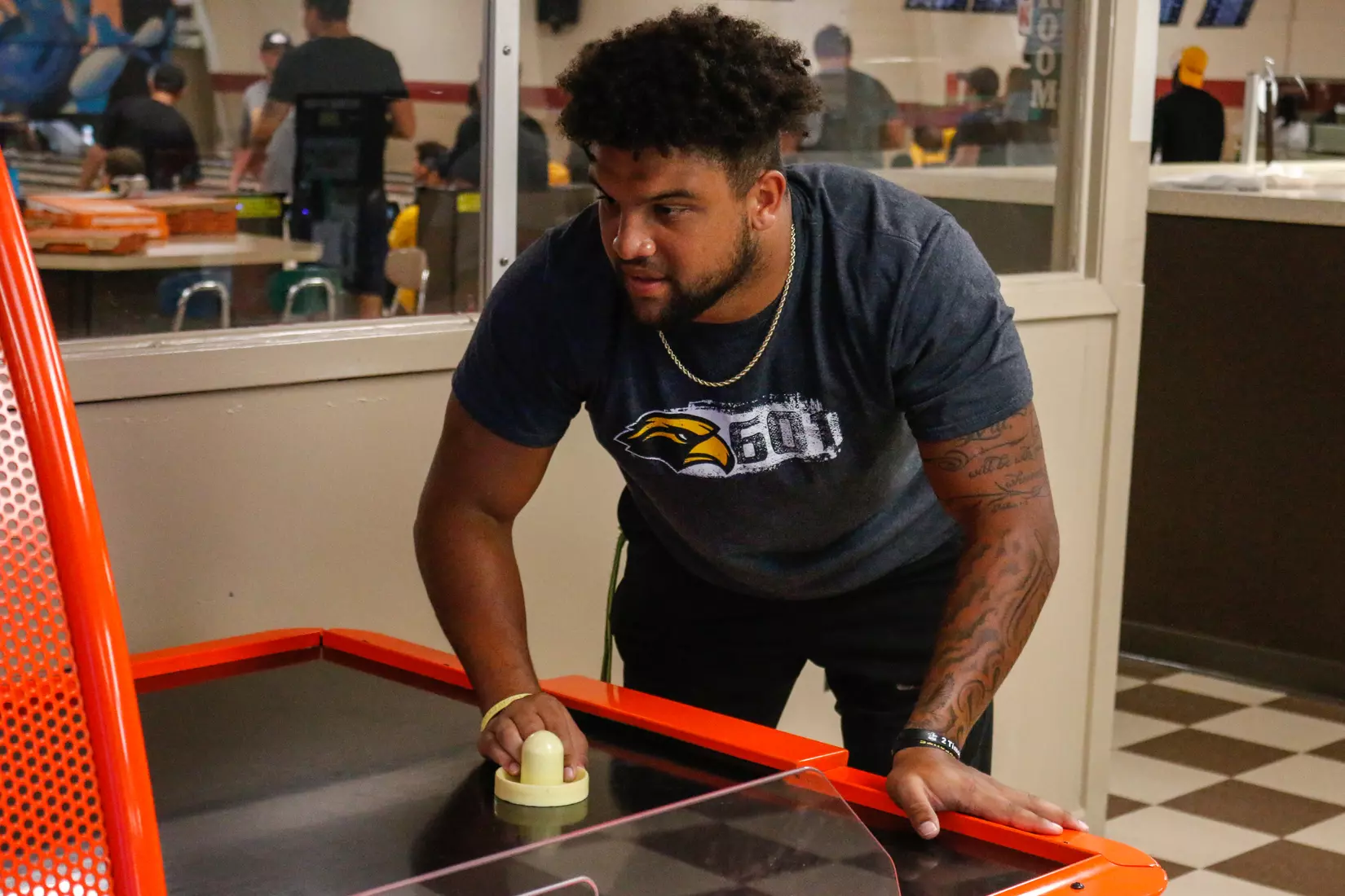 The 110-man roster, as well as coaching staff, took up the entire building, while some chose to venture over to the arcade for pool and air hockey. The team also enjoyed pizza and Powerade to keep the energy up for Saturday's closed scrimmage.