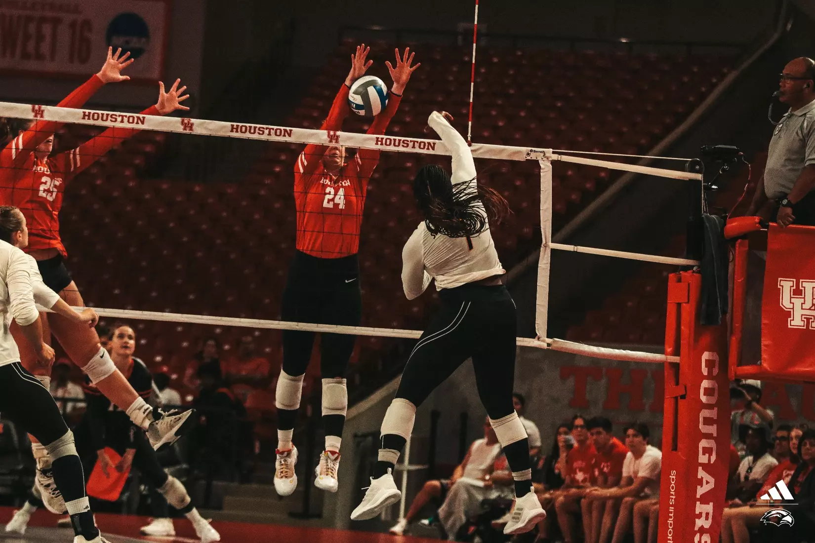 Facing a must-win situation, the Golden Eagles kept its momentum heading into the fourth set as a pair of kills from Mia Wesley gave the team an early lead. However, Houston staged a 7-1 run that pushed the score to 18-9.