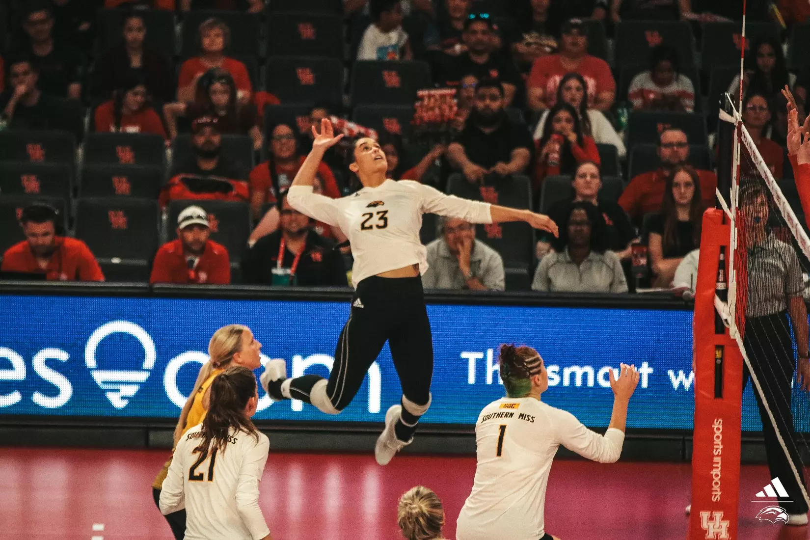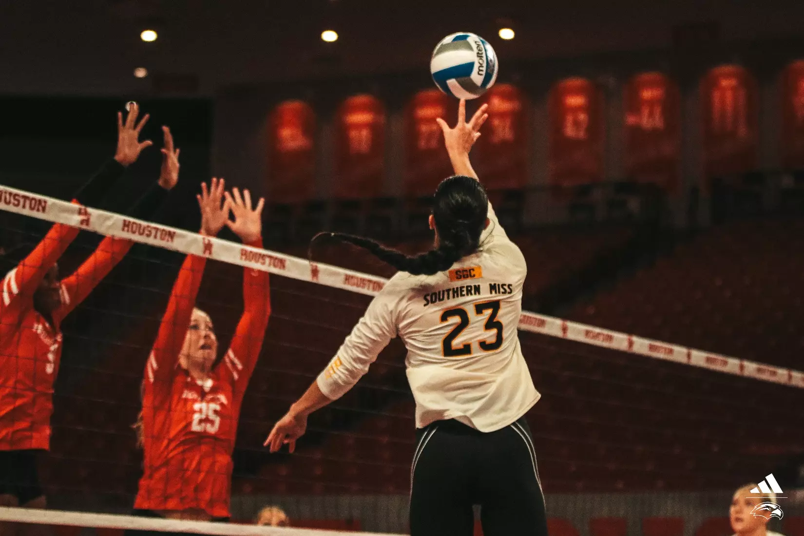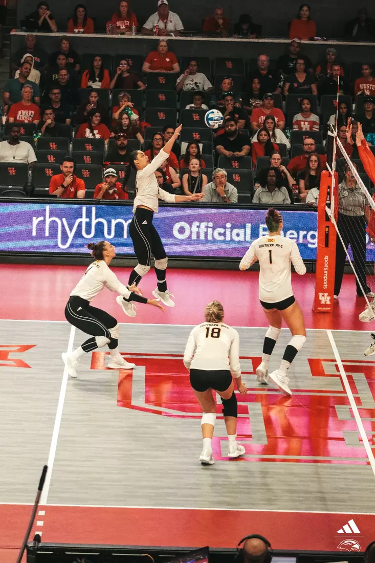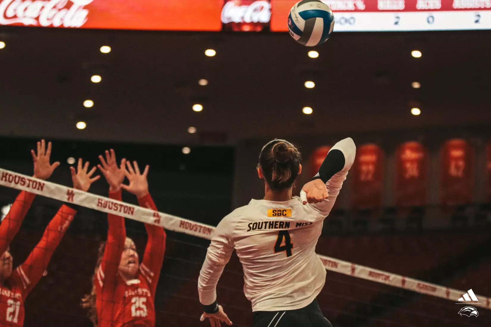 HOUSTON,Texas-Southern Miss nearly forced No. 19 Houston to five sets on their home court in Fertitta Center Saturday night, but the Cougars closed out the fourth set to win the match 3-1.